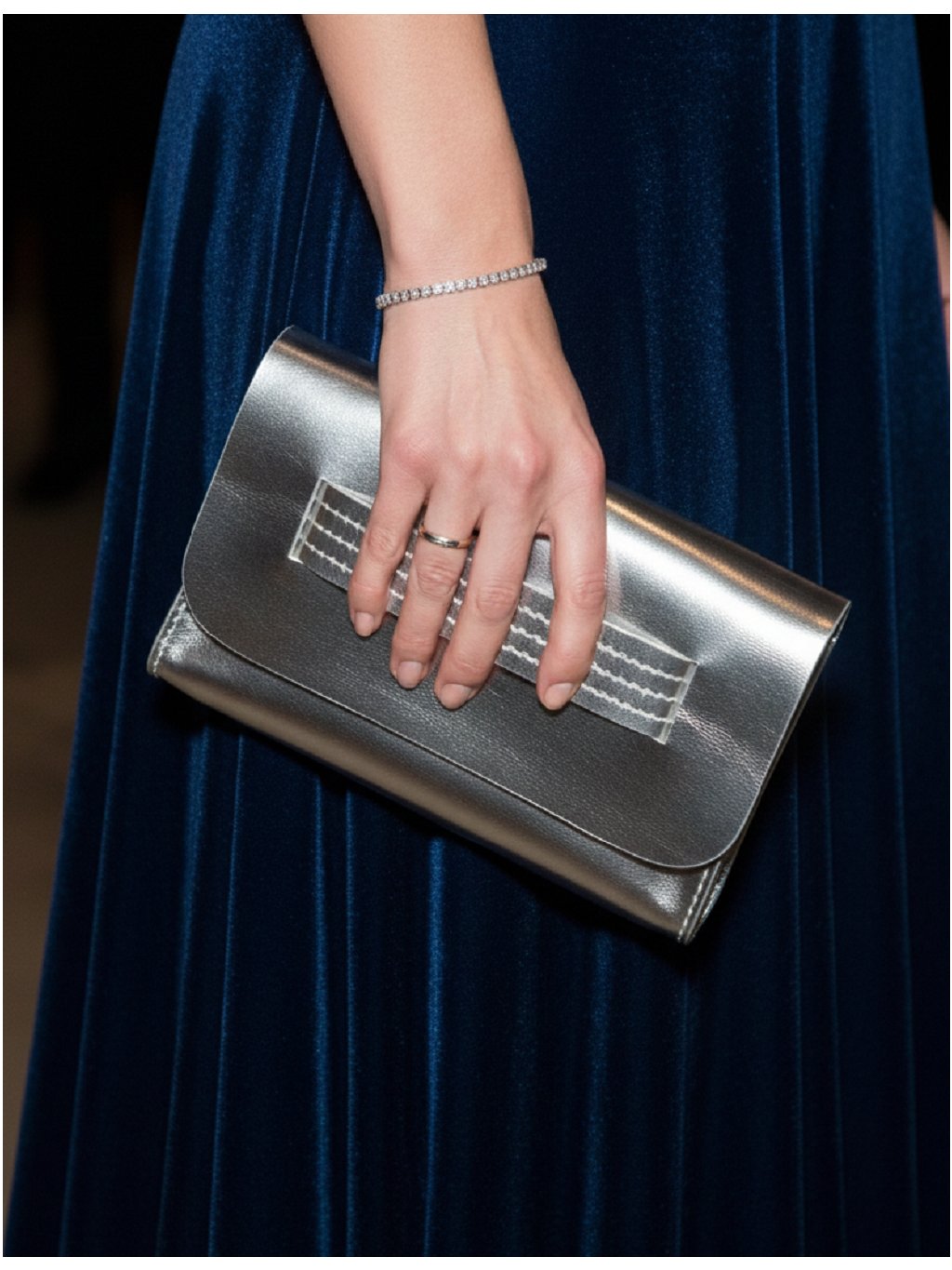 Psaníčko se nosí v ruce, snadnější úchyt zajišťuje široký pásek přes kabelku. Kůže je pevnější, psaníčko tedy pěkně drží tvar.