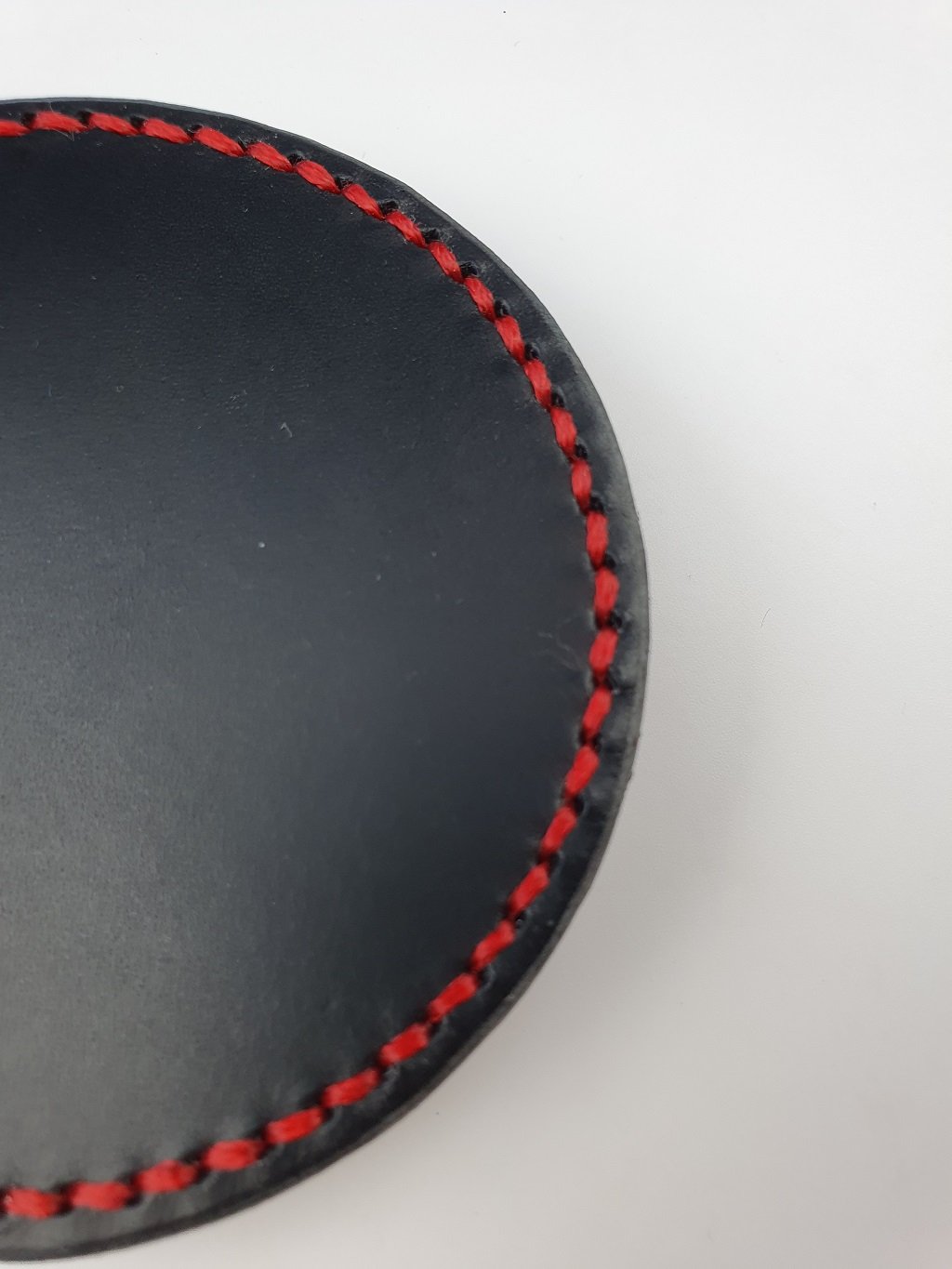 Kulaté podtácky jsou vyrobeny ze silné kůže a ručně obšity.