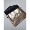 Krásné kožené psaníčko v kombinaci dvou měkkých kůží - černé a metalické zlaté - se vám bude určitě hodit, ať už míříte na jakoukoli slavnostní akci nebo třeba do divadla.